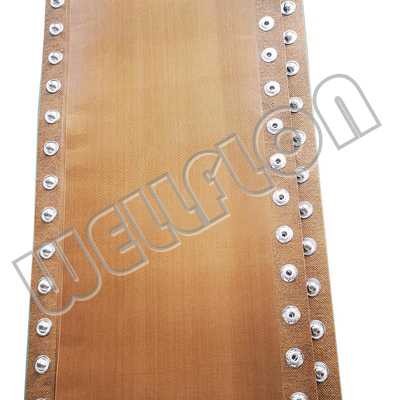 WellFlon® PTFE Teflon Side Sealing Belts are used best PTFE Teflon coated fiberglass fabric. then to make it into various PTFE Teflon seamless belts in different thickness, widths, perimeters and colors. These PTFE Teflon Side Seal Belts are widely used in the rolled paper products industryas as the conveyor belt. These belts are guided through the heat-seal units by PTFE Teflon Side Seal Belts running in tandem on either side of the product. The belts also provide a protective, non-stick barrier between the heat-seal elements, allowing the heat to transfer through to melt and seal the film wrapping, while preventing the molten film from sticking to the elements. Some belt applied the Raised metal rivet-like domes mate with